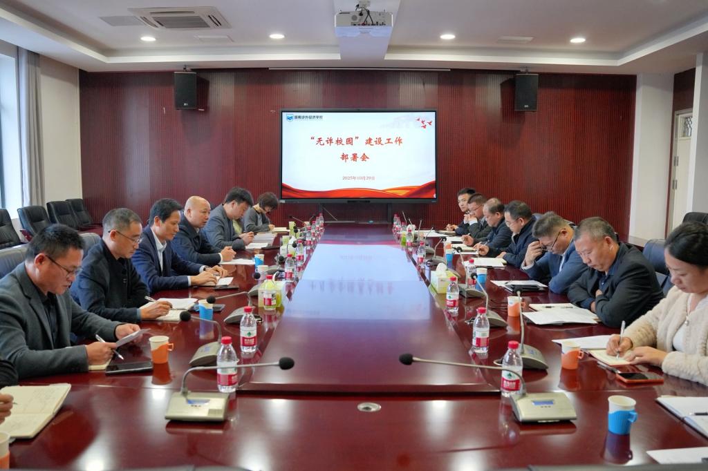 为深入贯彻落实全省教育厅关于“无诈校园”建设工作的部署要求,全面提升师生防范电信网络诈骗的意识和能力,切实维护校园安全稳定与师生财产安全,10月29日上午,学校在综合楼会议室组织召开“无诈校园”建设工作部署会议。副校长汪东明,校长助理徐京都出席会议,安全保卫处、党委宣传部、团委、信息技术处等相关职能部门负责同志及各二级学院党总支书记参加会议。