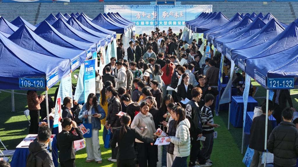 为精准搭建校企人才对接桥梁,高效匹配毕业生就业诉求与企业用人标准,11月28日上午我校2026届毕业生大型供需见面会在田径场隆重举行。本次活动由长沙市人力资源和社会保障局、湘江新区民政和社会保障局(退役军人事务局)与湖南涉外经济学院联合主办,是学校落实国家和省市关于高校毕业生就业工作部署的重要举措,也是年度就业工作的核心抓手。校长王耀中等全体校领导亲临双选会现场,与用人单位代表深入交流,细致了解企业招聘需求、岗位能力要求及未来人才培养导向,充分体现了学校对毕业生高质量充分就业的高度重视。