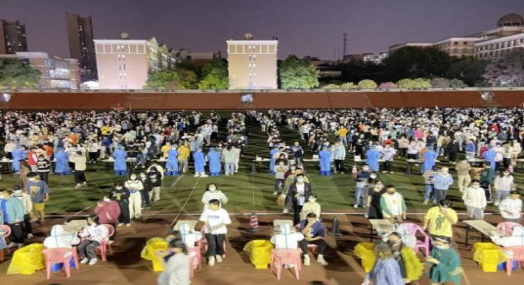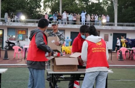 学院软工一支部学生副书记卢志玄同志介绍:志愿者们在老师的指导下,主要负责在田径场、学生楼栋组织学生有序排队、保持间距以及管理场内外各检测安全通道,努力做到无缝衔接,并为师生们针对核酸检测的相关问题进行答疑解惑。