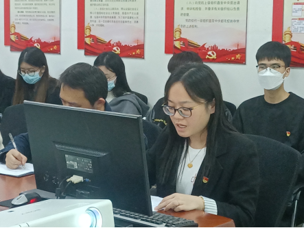 在学生党员代表分享环节,宋阳康、刘明鑫、张贵鹏等4名学生党员代表进行了分享。刘明鑫介绍了《红日》这本以解放战争为题材的长篇小说,真诚地呼吁大家要在自己的岗位尽最大一份力,发光发热,团结友爱,为社会贡献出绵薄之力。