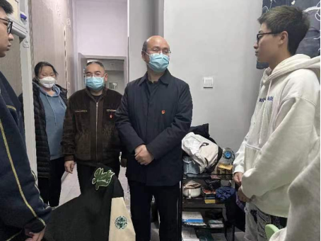 12月5日下午,我校党委书记杨念在信息与机电工程学院党总支书记唐志文、宿管专干刘丽娟等陪同下,来到西七栋、西四栋学生宿舍,看望留校学生和正在下寝的辅导员、宿管老师。