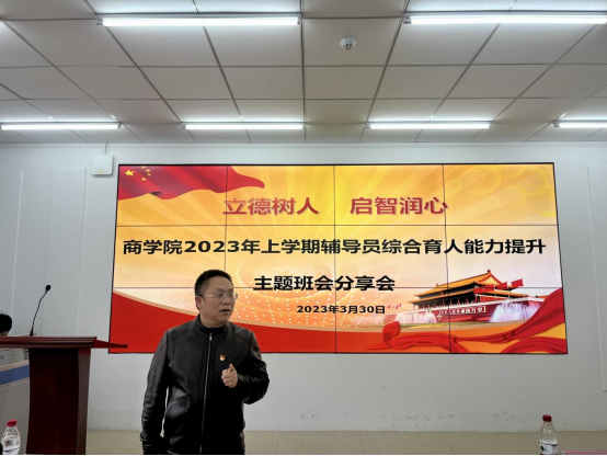 为进一步提高辅导员职业化、专业化水平,全方位提升辅导员理论水平、专业素养和工作能力,3月30日下午,我校商学院于综合楼C315举办辅导员主题班会案例分享会,马尚奇等7名辅导员参与本次评比。副校长鞠晨曦、商学院党总支书记李向明出席分享会,田柳文、陈波和刘娟等老师担任评委,全体辅导员和学生代表观摩此次比赛。
