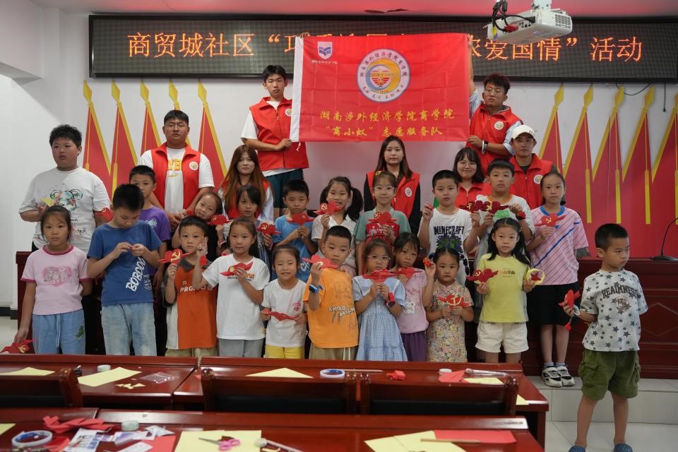 在这个金风送爽的季节,我们即将迎来伟大祖国的生日。为了表达对祖国的热爱和祝福,同时全面推进素质教育“五项工程”建设,提升学生综合素质能力,我校商学院商小蚁志愿服务队联合商贸城社区居委会和新枫社区居委会于9月21日、22日组织开展了“巧手迎国庆,浓浓爱国情”为主题的国防教育志愿活动。
