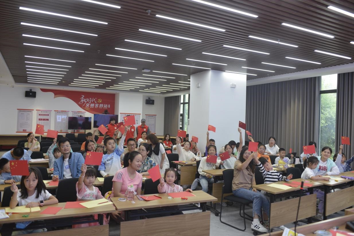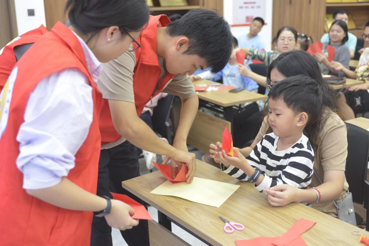 志愿者们通过故事和实例的结合向小朋友们讲述了国防知识和保护国家秘密的重要性,激发了现场小朋友们的爱国热情。志愿者们耐心地向小朋友们讲解着每一个折纸步骤,从简单的对折到复杂的造型。随着折纸的进行,一面面小巧的五星红旗、一个个精美的爱心在小朋友们的手中逐渐成型。这些作品便是他们心中对祖国深深的敬意和热爱的表达。