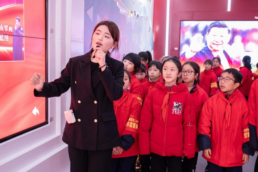 在我校党建与思政教育基地讲解员的引领下,岳麓二小师生通过“开天辟地”“改天换地”“翻天覆地”“惊天动地”四个精彩篇章,深刻感受了中国共产党百年党史,仿佛亲历了我党波澜壮阔的百年奋斗历程。每一个故事都如同一幅生动的历史画卷,让孩子们在聆听中了解党的发展、党的初心使命、党的光荣传统和优良作风,感受党的伟大与光荣,为孩子们在幼小的心田播撒下爱党爱国的种子,让红色基因得以在新一代中生根发芽。