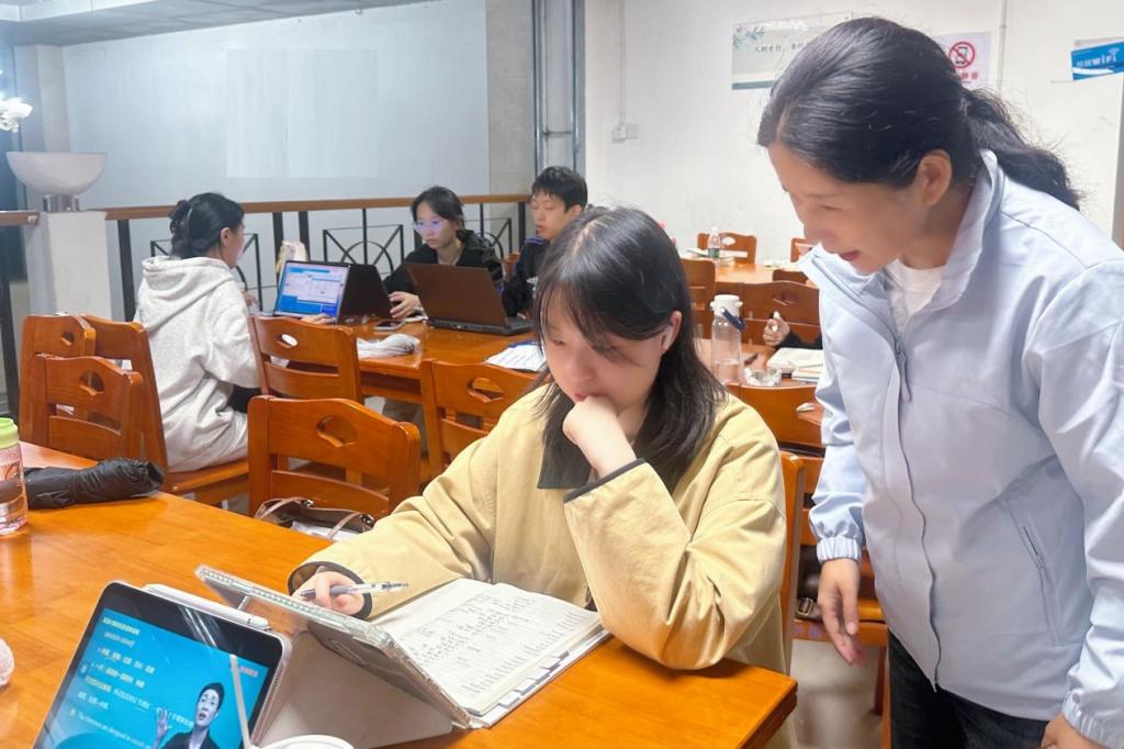 随后,王萍副校长前往图书馆。在阅览室,她轻步绕行查看,见同学们正专注研读,便轻声与在场学生交流,了解专业学习规划与图书馆资源使用情况,对同学们勤学的精神风貌给予肯定。在校园监控室,她叮嘱工作人员要强化责任意识,紧盯关键时段和重点区域,确保校园安全防控无死角,为师生营造安心的学习生活环境。