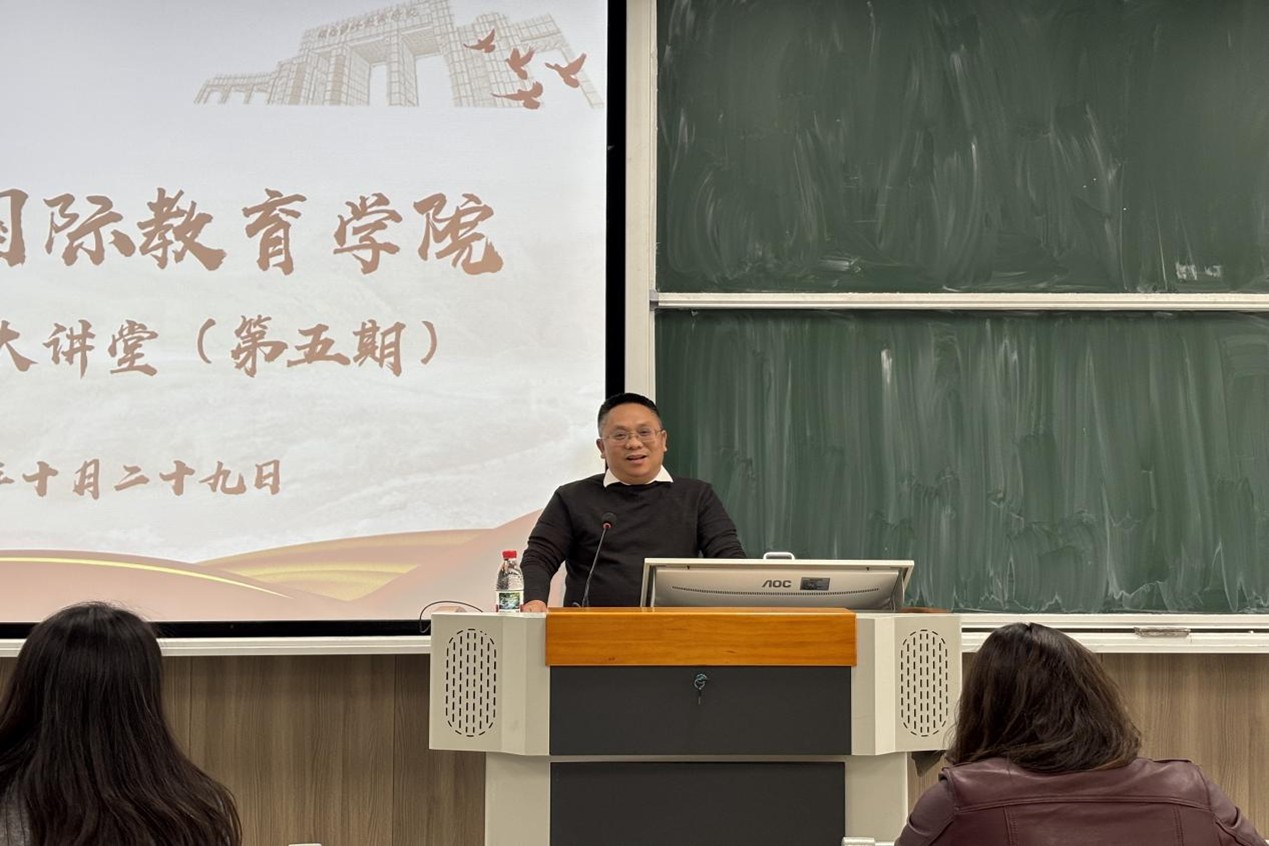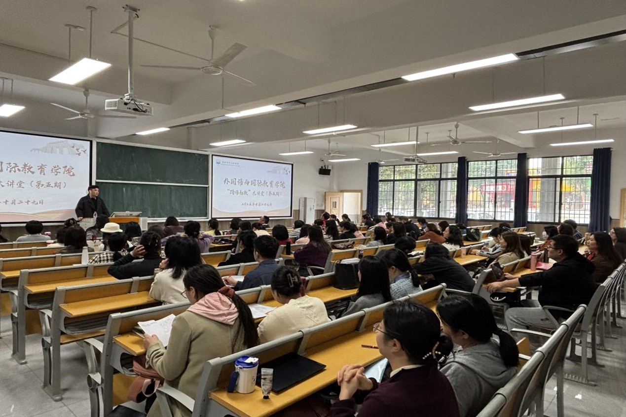 10月29日,我校外国语与国际教育学院在第五教学楼106教室举办“跨语融教”大讲堂第五期活动。本期活动特邀副校长鞠晨曦作主题分享,深度剖析AI时代的教育理念变革。院长许二鹏、副院长曾望及学院全体教职员工共同参与本次活动。活动由院长许二鹏主持并致辞。