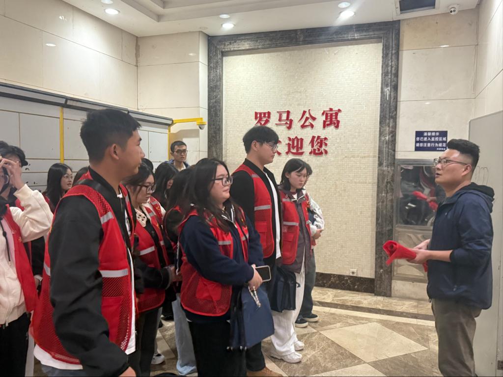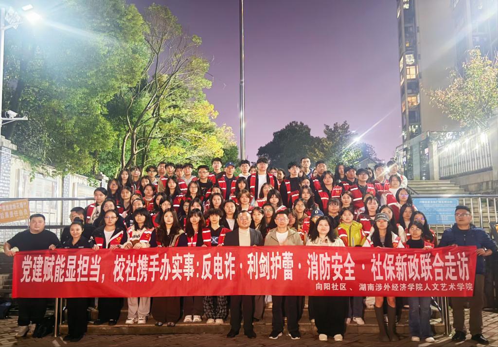 为持续筑牢社区安全防线,深化校社党建协同育人实效,11月14日晚,我校人文艺术学院与向阳社区携手开展以“党建领航聚合力,校社同心促治理”为主题的走访宣传活动。人文艺术学院文艺先锋志愿者服务队与社区工作人员共同深入爱佳公寓、罗马公寓等居民楼栋,以“一次走访、多项服务”的工作模式,为社区居民提供精准化的民生与安全服务。
