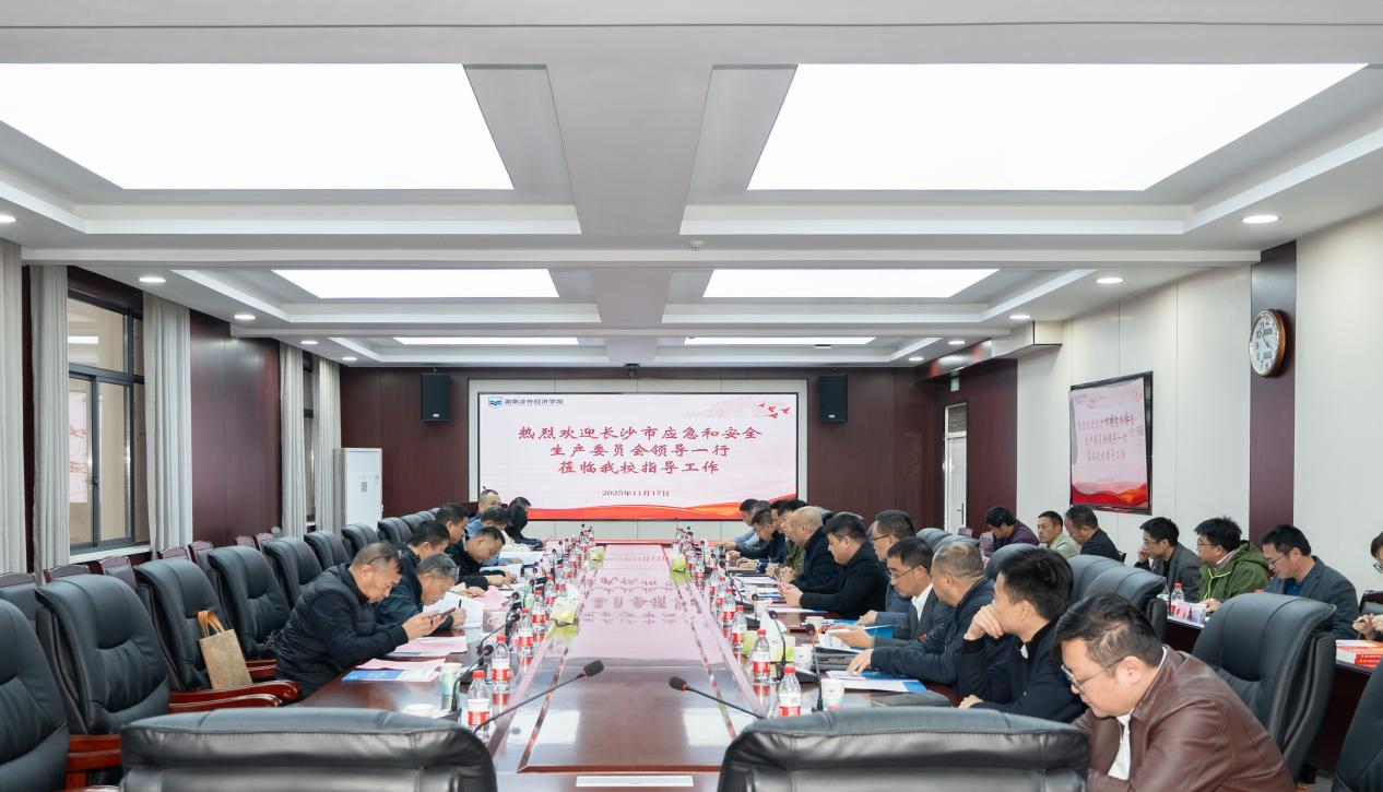 近日,长沙市应急管理和安全生产委员会检查组一行在组长朱建新带领下莅临我校开展校园安全风险隐患排查整治工作督导检查。校纪委书记、副校长汪东明主持见面会议,相关部门负责人和各二级学院党总支书记及相关人员参会。