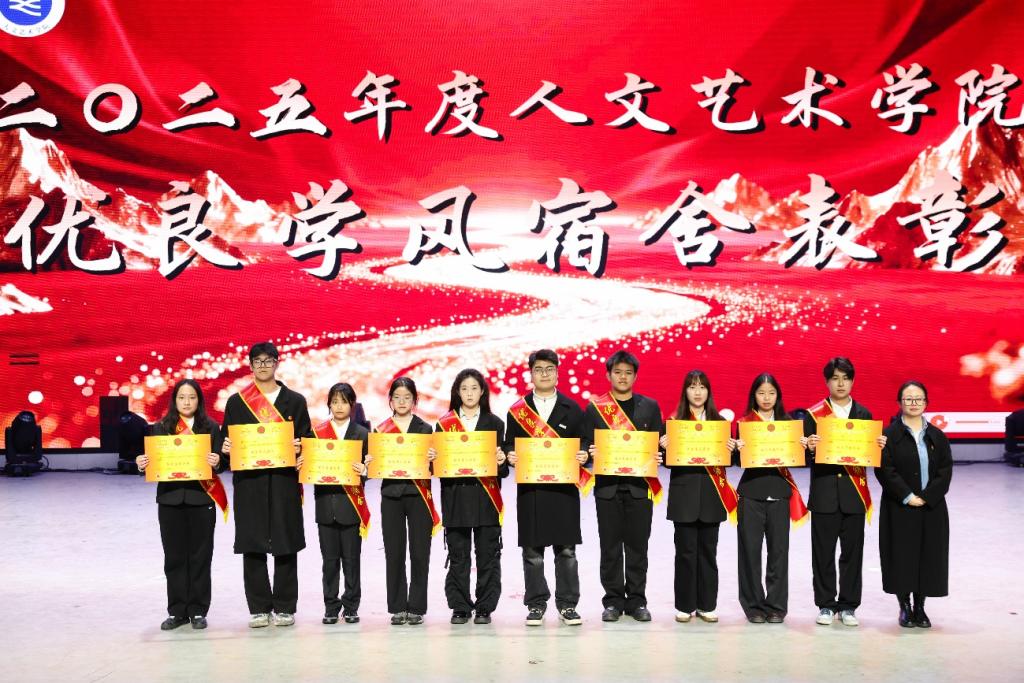 表彰环节采用视频回顾亮点工作与宣读颁奖词相结合的形式,对多个领域的先进集体与优秀个人予以表彰。集体表彰中,文学与文化产业系斩获首届“文艺杯”师生羽毛球赛冠军,产品与服饰设计系、视觉传达与环境设计系分获亚、季军,一批平安班级、优良学风班级及宿舍同步受表彰。个人表彰环节亮点频出,“榜样之星”及优秀志愿者、优秀学生干部、优秀辅导员等获奖者依次登台领奖,彰显师生担当奉献的良好风貌。