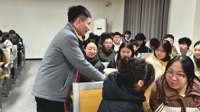 活动现场喜庆祥和、暖意融融。学院党总支书记杨建波、团总支书记邱涛及大一辅导员代表来到活动现场,与同学们亲切交流,为大家送上热气腾腾的元宵,并参与灯谜竞猜活动,共话佳节。在师生互动中,节日氛围愈发浓厚,欢声笑语此起彼伏。围绕传统文化元素设计灯谜内容,涵盖历史典故、诗词文化、节日习俗等多个方面,吸引大一年级同学广泛参与。活动过程中,同学们踊跃竞猜、积极互动,在沉浸式体验中感受传统文化的独特魅力,增进班级凝聚力与同窗情谊。