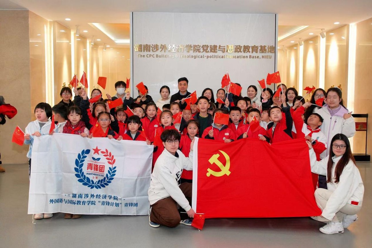 为从百年党史中汲取奋进力量,更好地弘扬雷锋精神,3月21日上午,我校外国语与国际教育学院联合岳麓区第二小学开展沉浸式党史学习教育。外国语与国际教育学院执行院长、党总支书记许二鹏,党总支副书记匡希茜带领学院“锋语者”双语志愿服务队队员,与岳麓区第二小学三年级师生及家长走进我校党建与思政教育基地,共同开展“锋语者·童心向党”沉浸式党史学习教育。此次活动是外国语与国际教育学院“一院一品”特色项目“涉外雷锋行、语桥通万家”的重要落地举措,以双语搭建沟通桥梁,推动红色教育融入青少年成长。