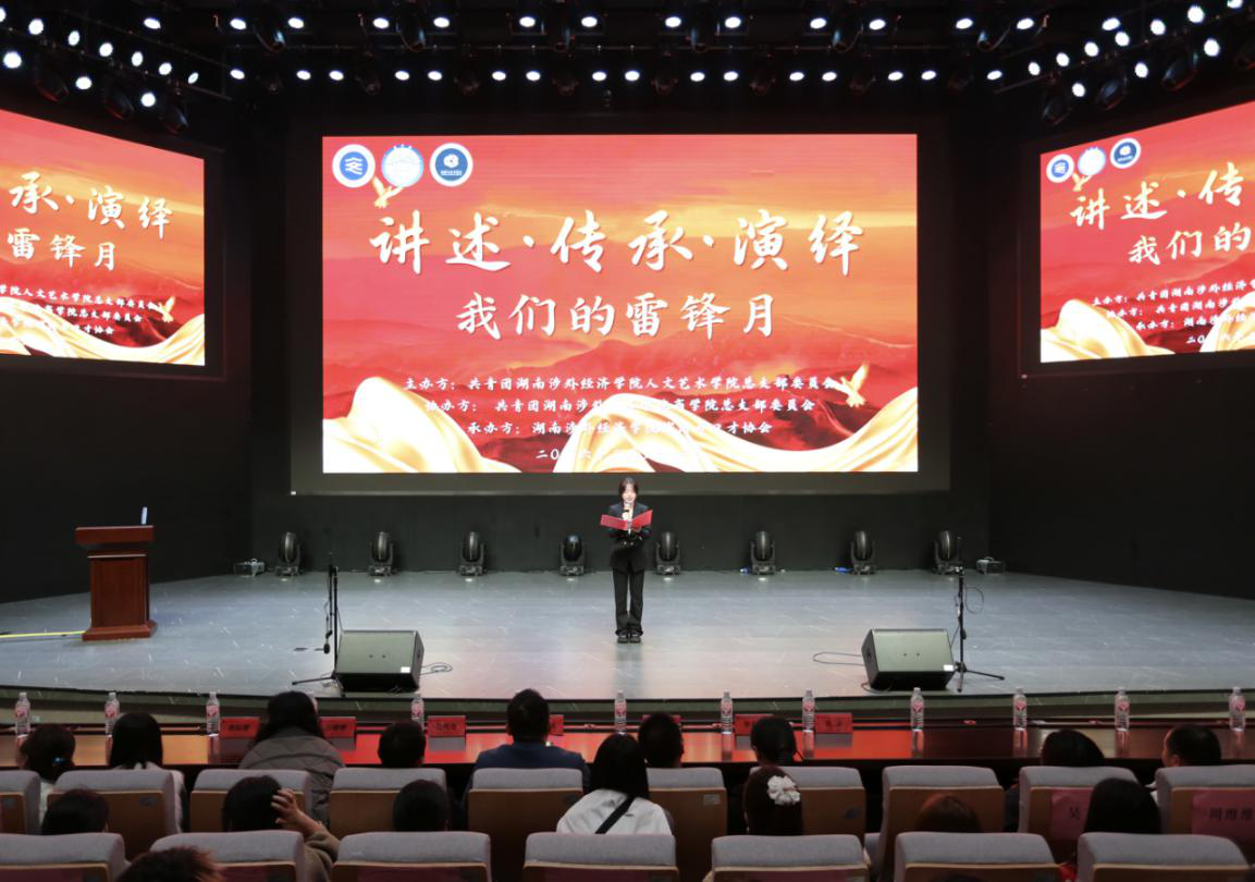 为深入学习贯彻习近平总书记关于学雷锋志愿服务的重要指示精神,大力弘扬雷锋精神,引导广大青年学生厚植家国情怀、涵养奉献精神,3月31日19:00,由湖南涉外经济学院人文艺术学院主办,商学院协办,演讲与口才协会承办的“讲述・传承・演绎 我们的雷锋月”主题汇演活动于世纪讲坛顺利举办。校团委书记李术凯、人文艺术学院院长李向明、人文艺术学院党总支书记马尚奇、商学院党总支书记廖立彬及师生代表齐聚一堂,共同在展演中感悟雷锋精神的时代内涵。