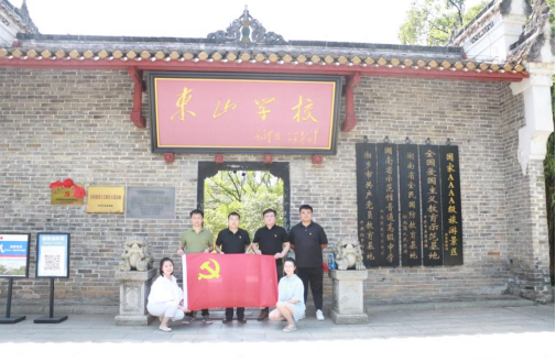 挂牌仪式结束后,东山学校工会主席苏建清带领我校党员同志们来到铜像大厅瞻仰毛泽东铜像,进献花篮,重温入党誓词。党建办主任萧弋淞接待我校一行参观东山书院旧址大院、东山书院陈列馆、少年毛泽东求学住过的寝室和教室,详细讲解少年毛泽东萌发励志救国历程和“实事求是”思想起源。
