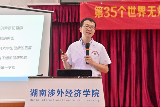 刘欢还就控烟时的行为干预、戒烟技巧等方面的知识进行了详细的讲解,告诫在座的师生,为了自己和他人,要自觉远离烟草。他鼓励广大师生积极参与控烟行动,共创无烟环境。