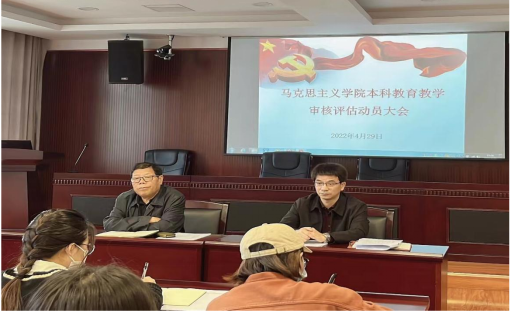 为切实做好马克思主义学院本科教育教学工作,迎接明年下半年的本科教育教学审核评估工作大检查,我校马克思主义学院于4月29日下午召开本科教育教学审核评估动员大会,会议由马克思主义学院院长周仲秋主持、党总支书记李故新主讲,学院全体教师参加。