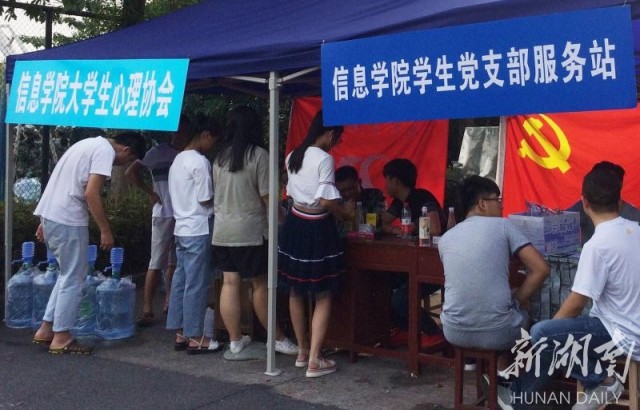 为了保障湖南涉外经济学院2017级新生军训工作的顺利开展,给新生军训提供更加贴心的服务,军训期间,信息科学与工程学院的学生党支部组织开展了服务新生军训的志愿活动,并在现场搭建起“信息学院学生党支部服务站”,为新生们提供后勤服务和医疗保障。志愿者们用热情的服务赢得广大新生的一致好评,更让大家感受到了学院的温暖与关怀。 廖立彬 摄