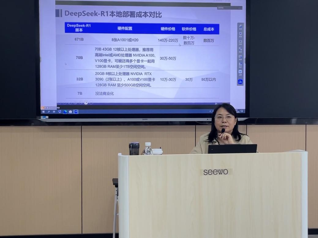 薛英娟副教授长期致力于高校教师信息化能力提升与教学改革,为AI智能体应用开发工程师。培训中,她重点介绍了DeepSeek科研应用方案、AI驱动的学术写作与课题申报、科研效率工具链整合、AI在课题答辩中的音视频处理技术,以及AI赋能科研型PPT制作等内容,为参训教师提供了一整套可落地的AI辅助科研工具与方法。